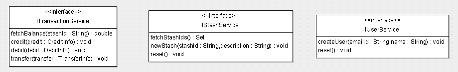 Me, my wife and kids as the people who spend money would use the – ITransactionService. My wife and I who actually own the stashes would create and administer our stashes through – IStashService. Me as Administrator would use the IUserService to add/remove/disable users based on how they are behaving :-).